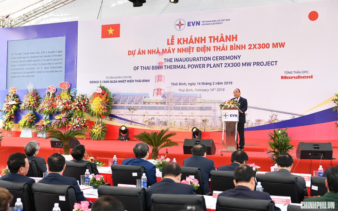 Nhân đây, Thủ tướng cho biết, đã báo cáo Bộ Chính trị về việc tiếp tục triển khai dự án nhiệt điện Thái Bình 2 sau một thời gian tồn tại kéo dài để cụm nhiệt điện này, có công suất lên đến gần 2.000 MW, theo cam kết của Tập đoàn Điện lực Việt Nam, để khánh thành vào năm 2020, mà nay đã đạt 83% khối lượng công việc.