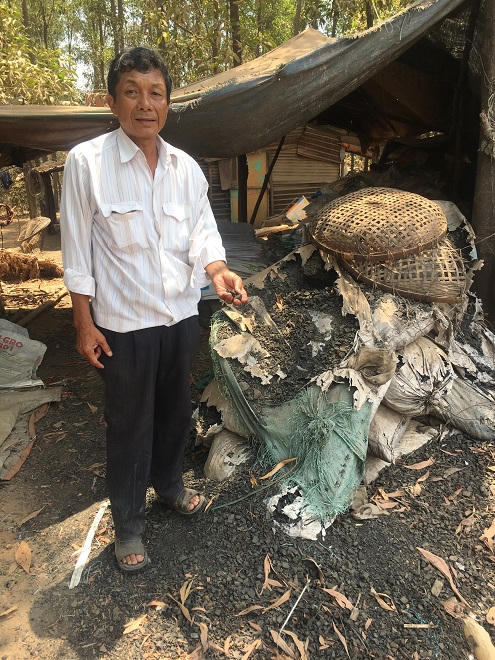 Ông Ngà kể, sau ngày gia đình bị cưỡng chế, chỉ còn bộ đồ trên người. Nhìn những người làm công cũng “vạ lây” mất trắng, ông mới xoay sang nghề đi mua củi từ mấy công ty đồ gỗ về đốt than. Mỗi tấn củi giá khoảng 1 triệu.