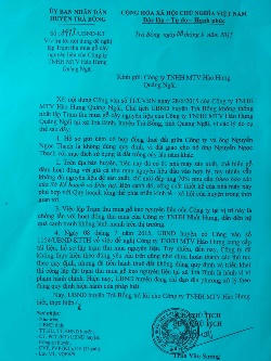 Thời gian gần đây, công ty TNHH MTV Hào Hưng Quảng Ngãi (gọi tắt Công ty Hào Hưng) liên tục có đơn gửi Tỉnh ủy, UBND tỉnh Quảng Ngãi “cầu cứu” về việc UBND hai huyện Sơn Hà, Trà Bồng không cho phép Công ty tiếp tục thực hiện lập trạm thu mua gỗ keo nguyên liệu trong khi UBND tỉnh đã đồng ý chủ trương trên.