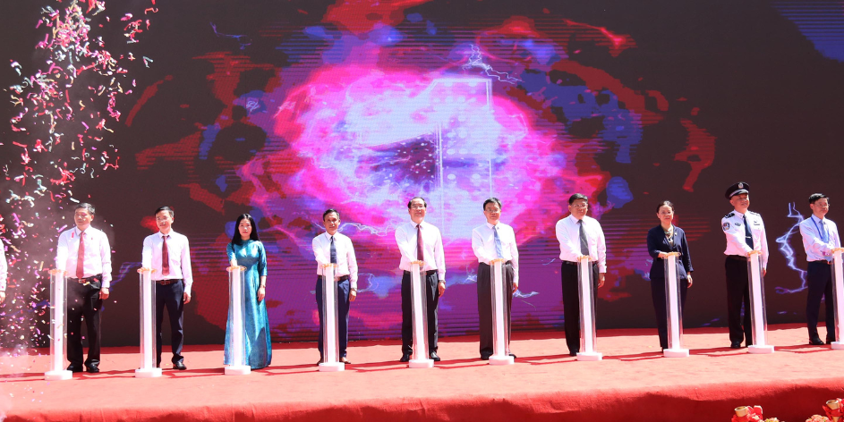 Các đại biểu ấn nút chính thực vận hành các lối thông quan, đường chuyên dụng thuộc cặp Cửa khẩu Quốc tế Hữu Nghị - Hữu Nghị Quan (Ảnh: Hoàng Thu) |