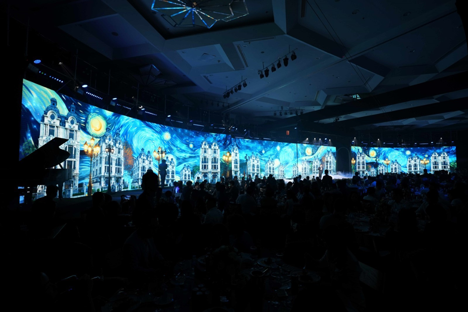 Kiến trúc tinh tế của Noble Palace Long Biên trong màn trình diễn lấy cảm hứng từ kiệt tác "Đêm đầy sao" của danh hoạ Van Gogh.