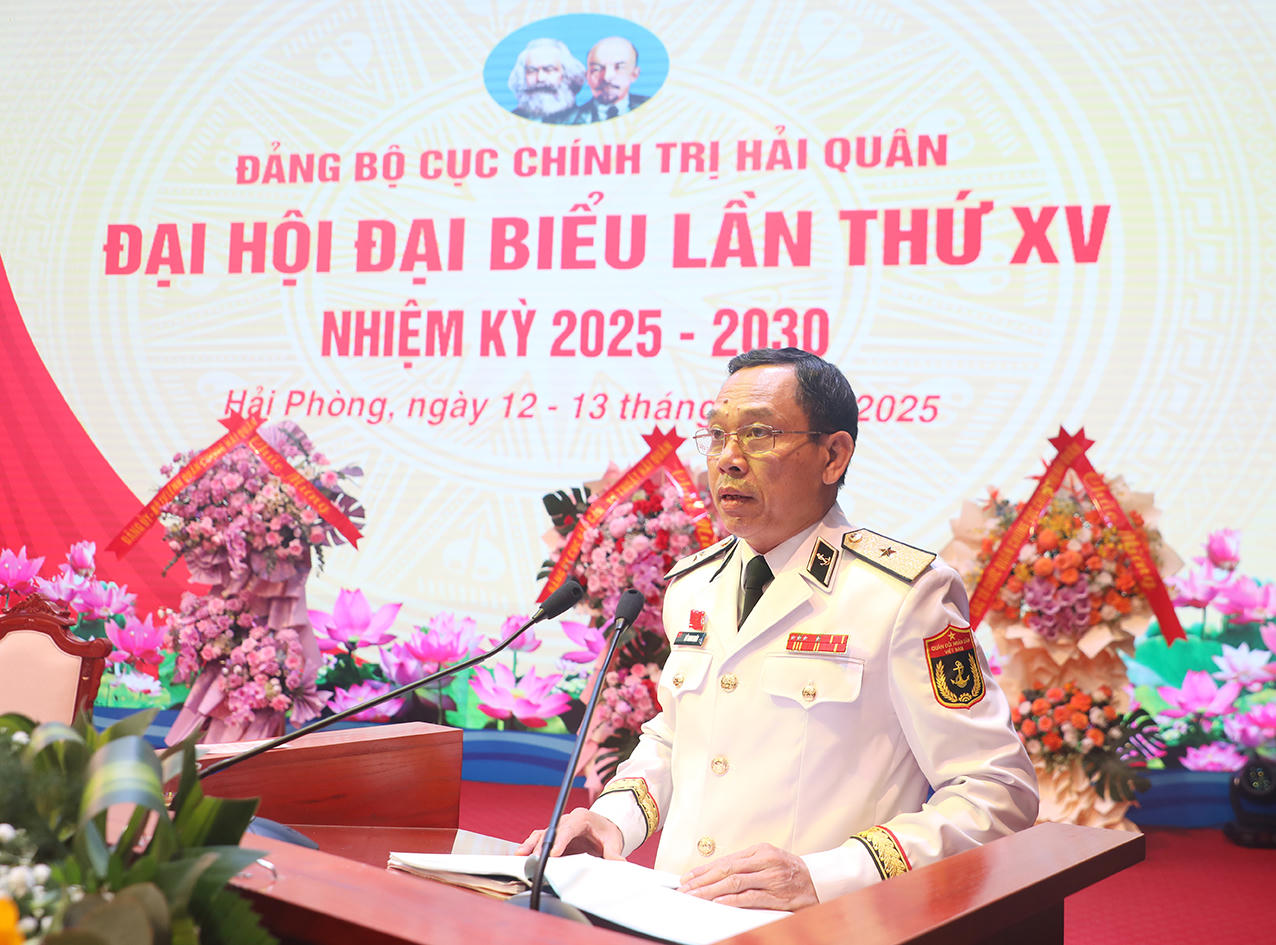 (PLM) - Trong hai ngày 12 và 13/6 tại TP. Hải Phòng, Đảng bộ Cục Chính trị Hải quân long trọng tổ chức Đại hội đại biểu lần thứ XV, nhiệm kỳ 2025 – 2030. Dự và chỉ đạo đại hội, Thiếu tướng Nguyễn An Phong, Bí thư Đảng ủy, Chính ủy Hải quân nhấn mạnh “bất luận trong hoàn cảnh nào cũng phải bảo vệ bằng được từng tấc đất, sải đảo của Tổ quốc”.