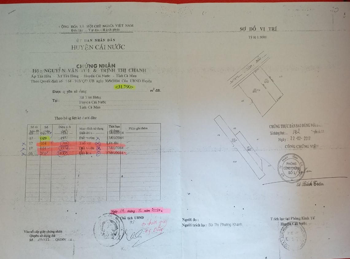 Luật sư Trần Hoàng Phương, Đoàn Luật sự tỉnh Cà Mau – người bảo vệ quyền và lợi ích hợp pháp của gia đình bà Điệp, cho biết: “Qua các lần hòa giải thì bà Chanh cho rằng đây là phần đất của bà mua lại từ bà Lợi. Khi chúng tôi trình ra giấy tờ liên quan thì bà Chanh nói là được tặng, cho. Nhưng khi bà Lợi còn sống, thì bà Lợi cũng khẳng định các chữ ký trong giấy cho đất không phải do bà ký”.