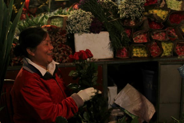 Những tiểu thương tất bật vận chuyển hoa để đảm bảo nhu cầu hoa tươi của người dân, mặc dù công việc rất vất vả vì chợ họp vào lúc nửa đêm cho đến sáng sớm, nhưng các chủ kinh doanh vẫn vui vẻ khi được làm việc bên những gánh hàng hoa của mình.