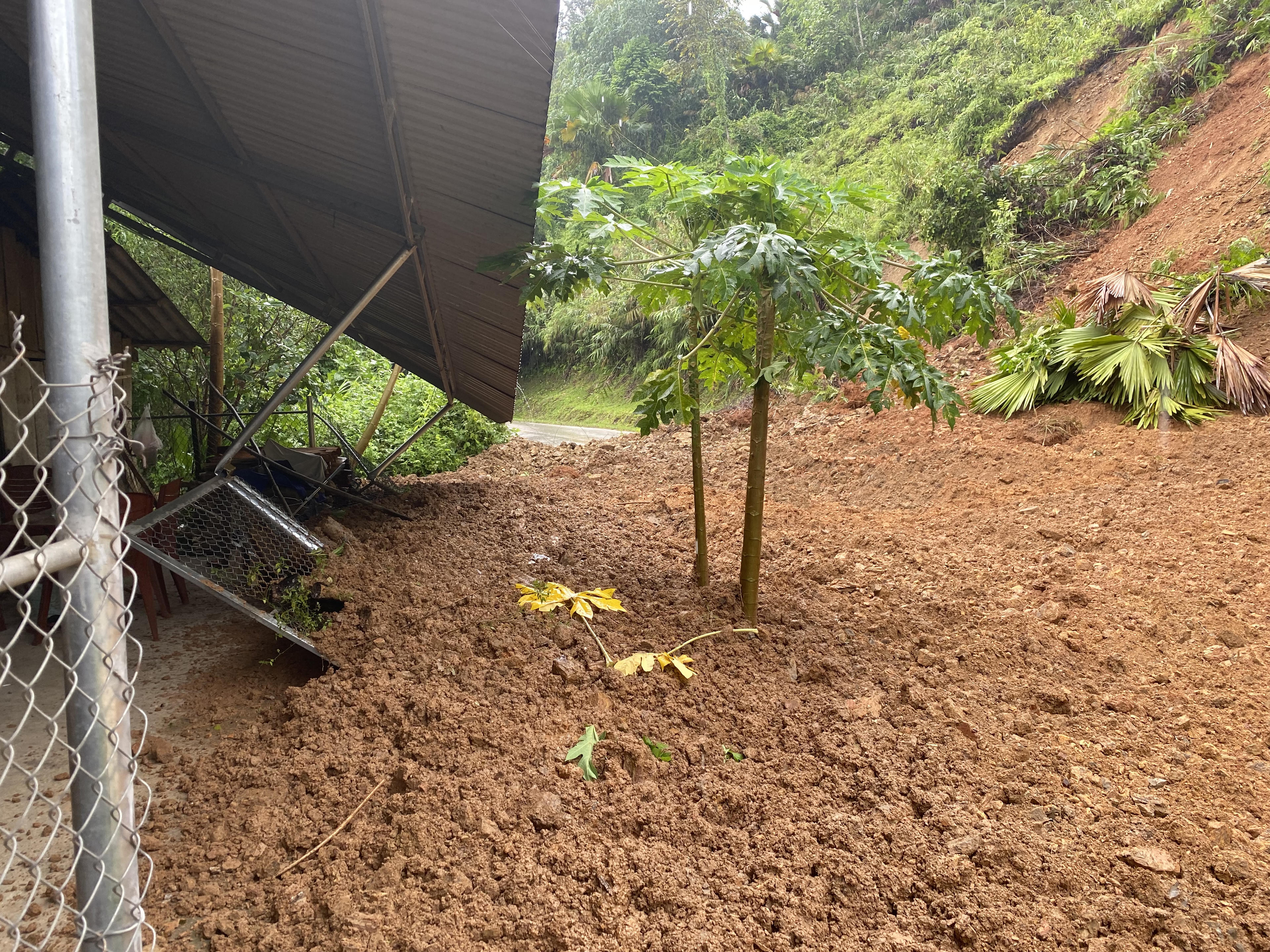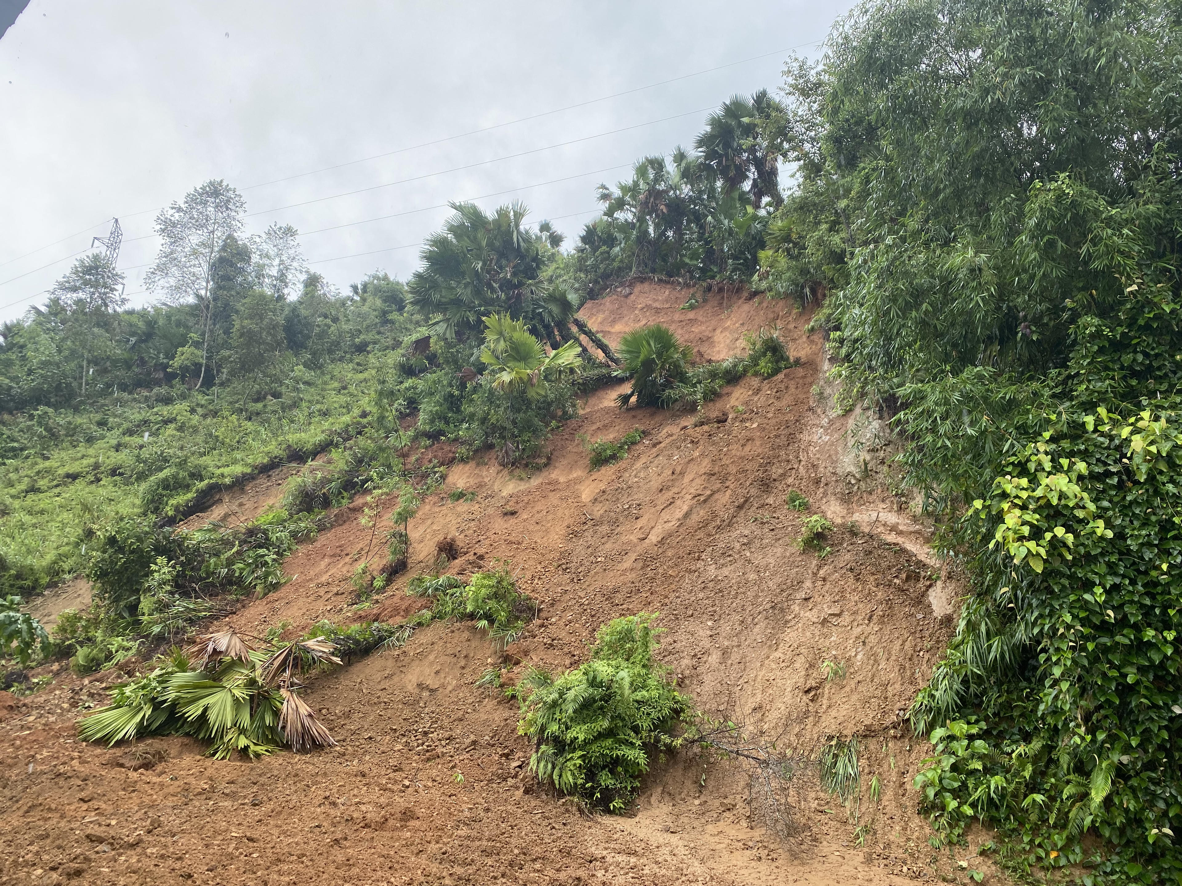 | Do mưa lớn, lượng nước nhiều nên nền đất yếu, nguy cơ sạt lở tiếp vẫn rất cao. (Ảnh: Lê Hanh) |