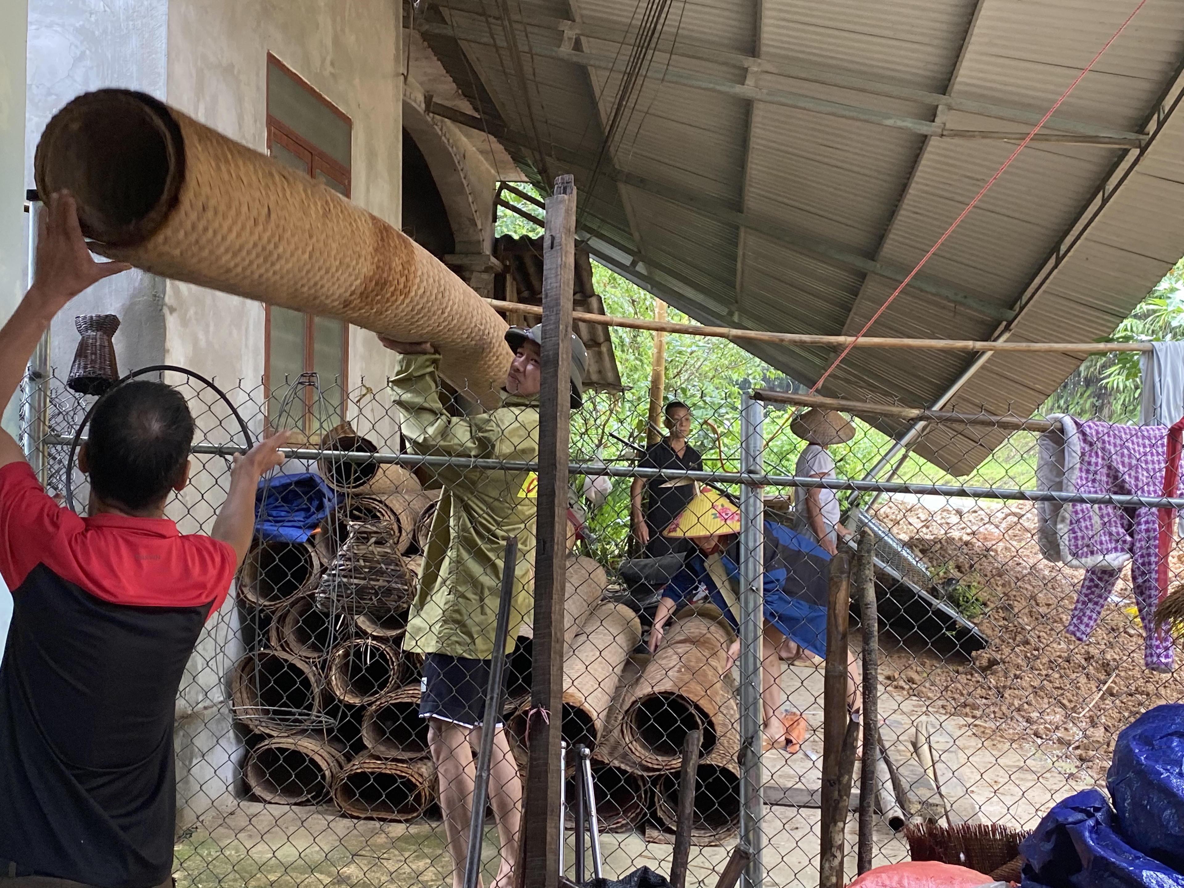 | Người dân sinh sống bên cạnh khu vực sạt lở đang khẩn trương thu dọn tài sản để đảm bảo an toàn. (Ảnh: Lê Hanh) |