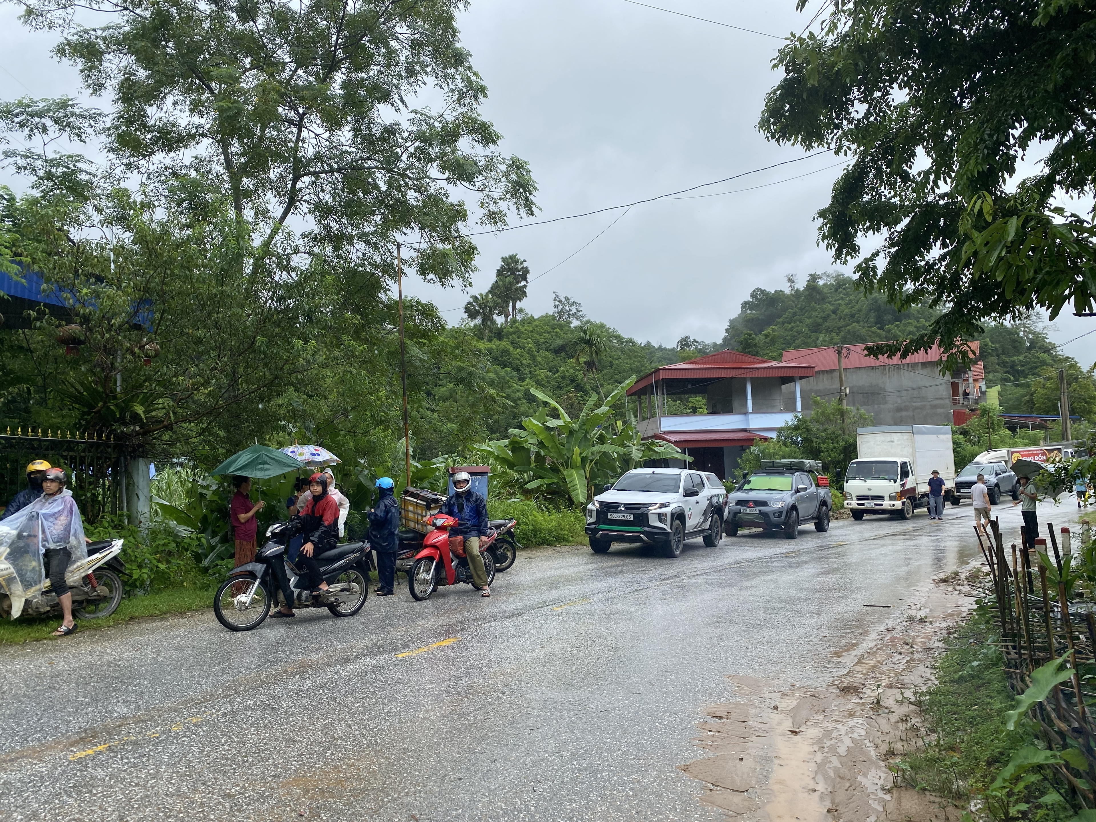 | Các phương tiện đi lại qua tuyến đường đã không thể di chuyển và đứng thành hàng dài. (Ảnh : Lê Hanh) |