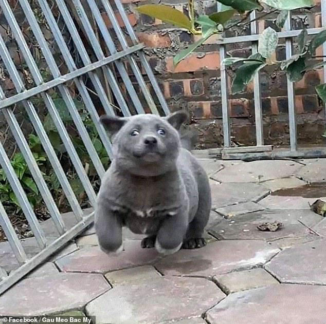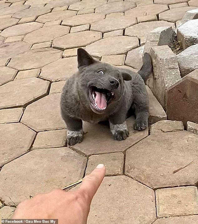 Dúi được trang web của nhà xuất bản số nổi tiếng thế giới Bored Panda đăng nguyên một cụm ảnh. Đó là một chú chó con khoảng 10 tuần tuổi có vẻ mặt vui tươi, nó đang khoe lưỡi và vẫy đuôi vui sướng khi chơi bên ngoài sân với những con chó khác.
