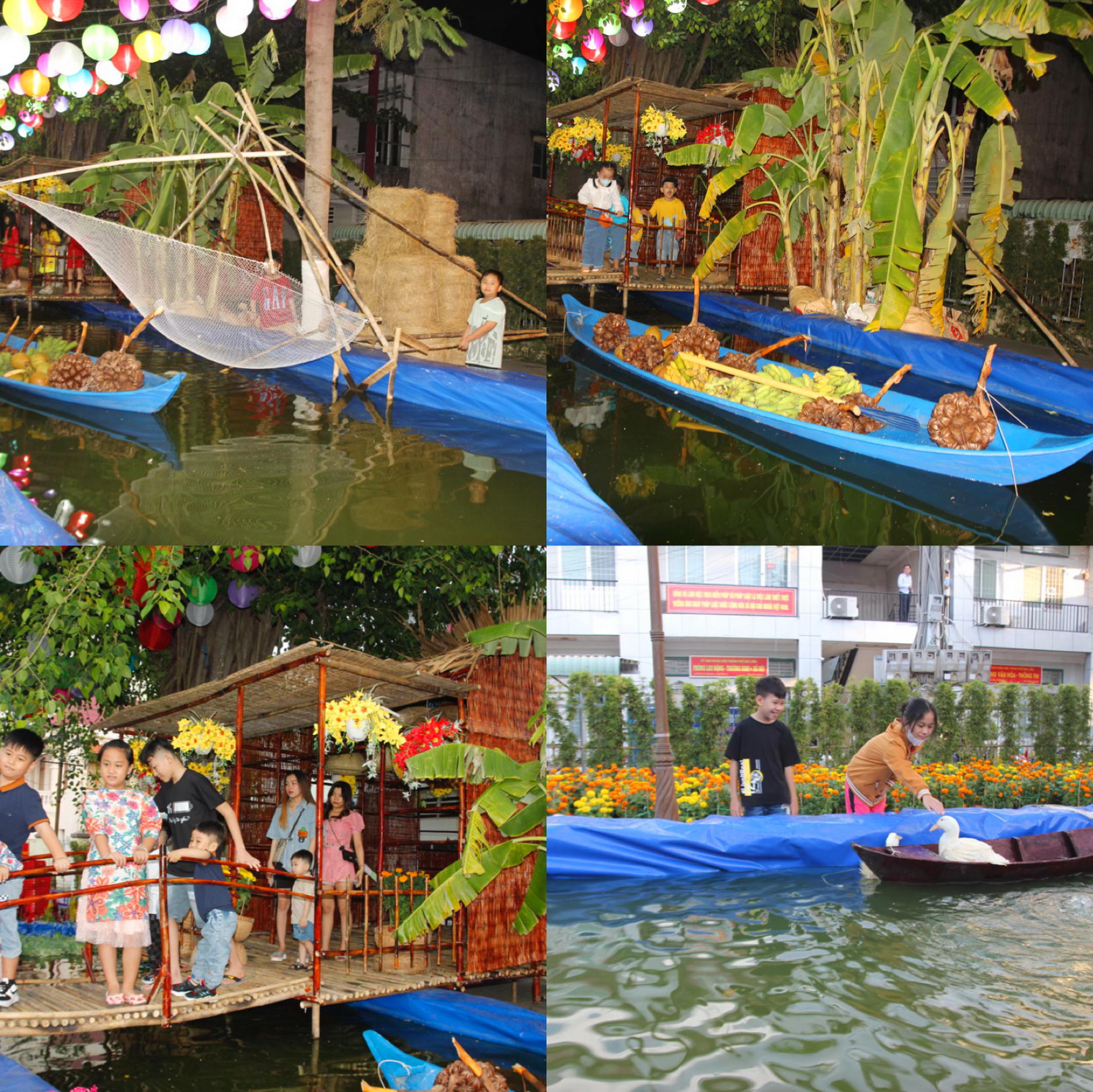 Nhiều tiểu cảnh quê như cầu tre, vó cá tôm, xuồng chở chuối, dừa... |