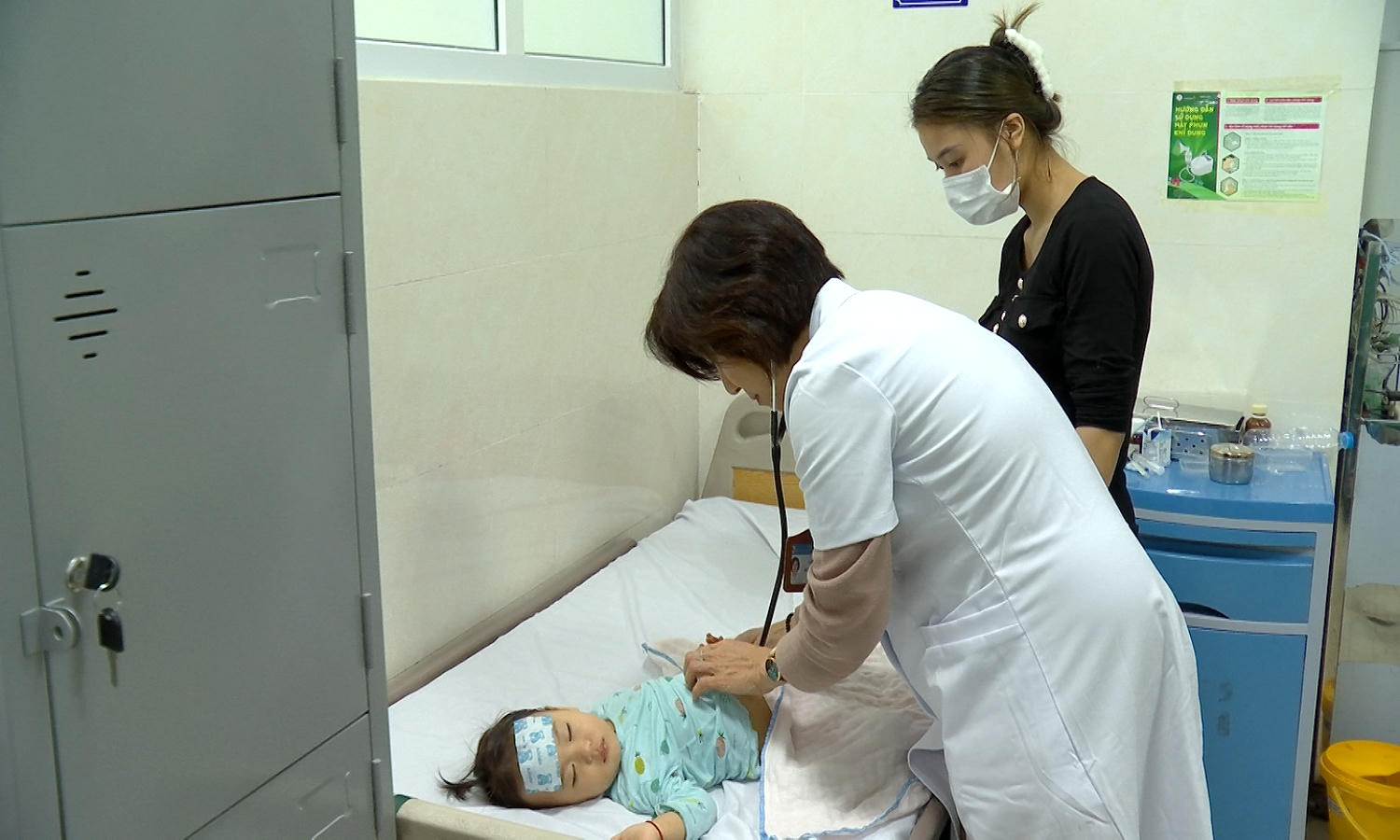 Bác sĩ Xuân thăm khám cho bệnh nhi. Ảnh: Ngọc Nga |