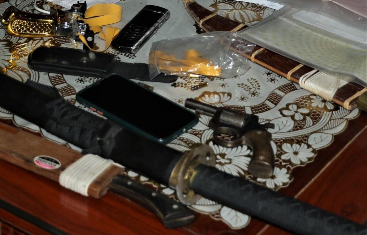 Tại hiện trường, lực lượng chức năng đã thu giữ của đối tượng 10 quyển sổ ghi chép cho vay tiền và thu tiền lãi hàng tháng; 1 khẩu súng dạng súng côn trong súng đã lắp sẵn 5 viên đạn, 25 viên đạn thu giữ trong nhà; 1 thanh kiếm; 5 dao nhọn; 30 giấy chứng nhận quyền sử dụng đất; 150 triệu đồng và 2400 USD, 6 sổ tiết kiệm tổng trị giá 3 tỷ đồng.