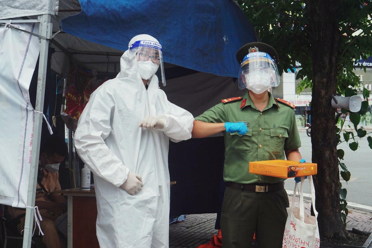 Tiếp sức cho các chú bộ đội, công an đang thực hiện nhiệm vụ tại các chốt. |