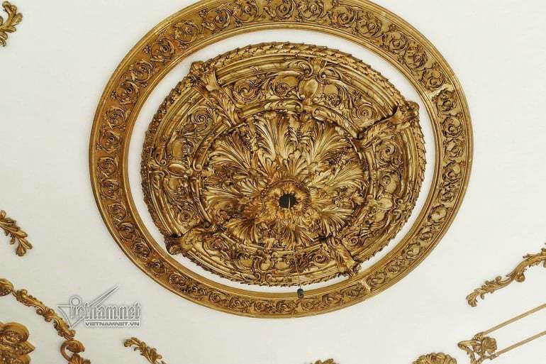 Hoa văn đắp nổi trên trần nhà bằng đồng mạ vàng 18k