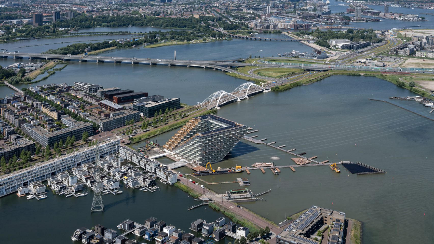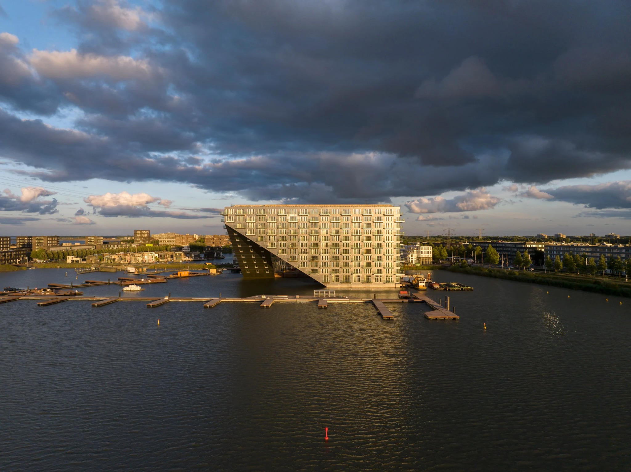 Ngoài ra, khu phức hợp còn có một bến cảng bên trong tòa nhà với những chiếc thuyền nhỏ có thể di chuyển qua khoảng thông tầng hình tam giác ở chân công trình và cập cảng ngay dưới khu nhà ở. Thiết kế như vậy cũng nhằm cung cấp ánh sáng và tầm nhìn hấp dẫn ra mặt nước cho các căn hộ bên trong tòa nhà.