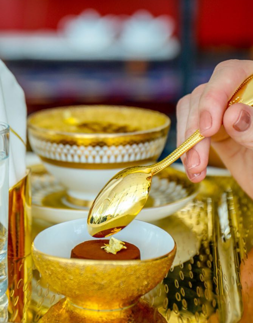 Loại đồ uống này là một trong những thức uống ưa chuộng của hội con nhà giàu ở Dubai. Thực tế, vàng không có hương vị nhưng người Dubai có thể bỏ ra từ hàng ngàn tới hàng chục ngàn USD để thưởng thức các món ăn làm từ vàng. Những người đến đây thưởng thức ly cà phê phủ vàng 24 carat này không chỉ bởi hương vị quyến rũ mà còn muốn thể hiện sự sang trọng, đẳng cấp và sự giàu có của bản thân.