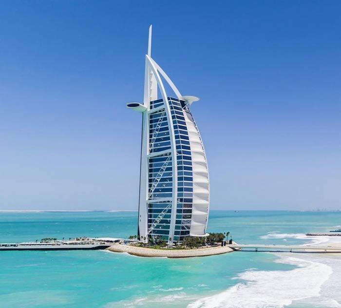 Khách sạn Burj Al Arab tọa lạc tại thành phố Dubai, thuộc Các tiểu vương quốc Ả Rập thống nhất. Đây được mệnh danh là một trong những khách sạn xa xỉ nhất thế giới. Nó không được xây dựng trên đất liền mà trên hòn đảo nhân tạo Jumeirah. Phải mất đến 3 năm, phần móng của tòa nhà mới được hoàn thiện và kiến trúc bên trên của Burj AI Arab đã vượt xa những gì mà người ta mong đợi, để khi ‘khoe’ ra thế giới, không ít người đã choáng ngợp trước sự xa hoa của khách sạn này.