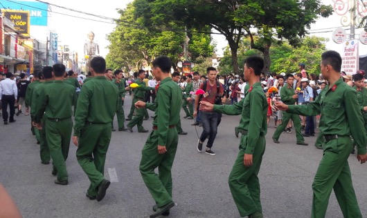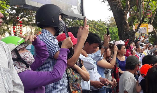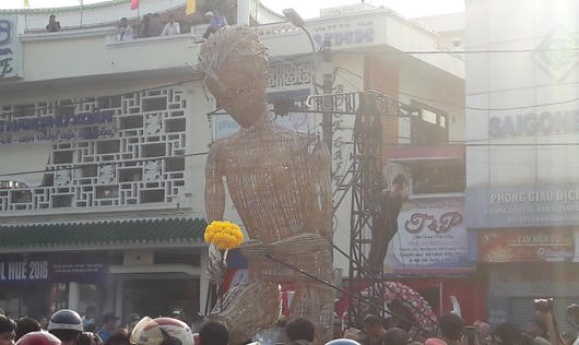 Hàng ngàn người dân và du khách đã chụp ảnh lưu niệm cùng chú rối khổng lồ khiến tuyến đường Trần Hưng Đạo (TP. Huế) bị tắc cục bộ.