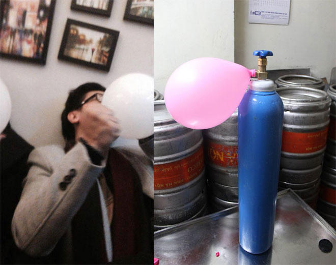 Anh ta cho hay, chỗ anh ta là đại lý chuyên phân phối bóng cười cho các quán bar, quán cà phê, vũ trường nên không có loại bình khí mini, mà chỉ có loại bình khí lớn 5kg và 20kg. Anh ta khuyên chúng tôi do bước đầu mới kinh doanh, do vậy lượng khách sử dụng bóng cười chưa nhiều và chưa ổn định, thế nên nhập loại bình khí 5kg là hợp lý nhất.