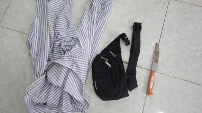Người đàn ông này điều khiển xe đến đoạn đường vắng dùng con dao mang theo cắt vai áo và dùng tay xé rách rồi nằm xuống bên đường.