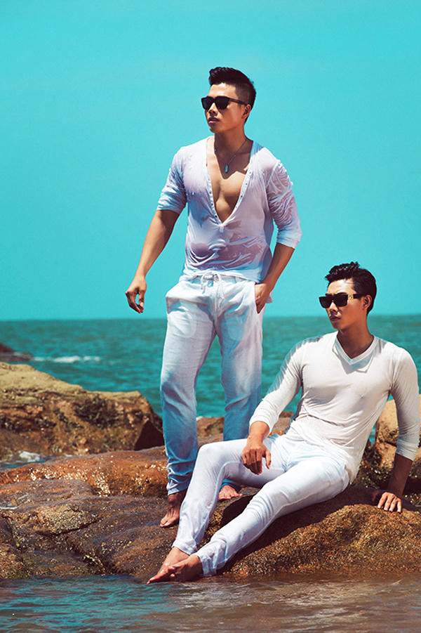 Cùng với các mẫu áo gợi cảm cho nữ giới là các kiểu sơ mi, quần ống rộng rút dây dành cho nam giới. Chất liệu vải thô trên những phom dáng cơ bản sẽ giúp họ trở nên thanh lịch hơn nhưng không mất đi vẻ nam tính vốn có.