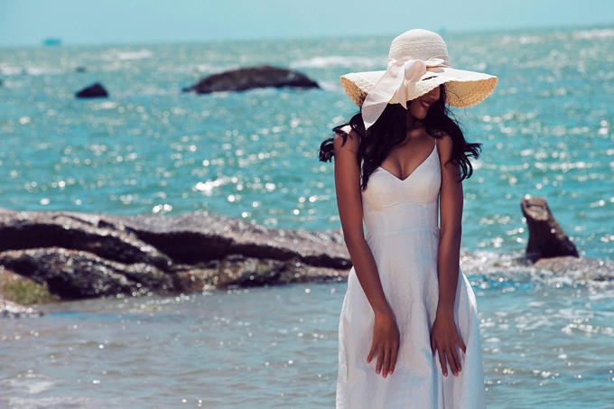 Trang phục trên gam trắng thanh nhã luôn là lựa chọn hàng đầu của phái đẹp khi đặt chân đến những miền biển đẹp.