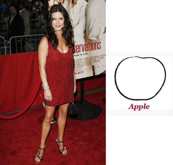 Diễn viên Catherine Zeta-Jones với phom người trái táo. Người hình trái táo: Lưng, vai và sườn rộng, hông nhỏ |