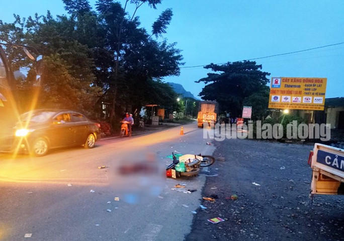 Khi tới địa điểm trên, chiếc ôtô tải bất ngờ tông vào đuôi chiếc xe máy đi cùng chiều mang BKS 28S4-9297 do anh N.D.H. điều khiển chở theo vợ là chị B.T.T. (cùng SN 1999, ngụ phố Lâm Hóa, xã Vũ Lâm, huyện Lạc Sơn, tỉnh Hòa Bình).