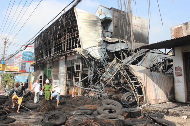 Cửa hàng chứa toàn lốp xe nên lửa bốc cao, nhanh chóng bao trùm toàn bộ cửa hàng và lan sang căn nhà bên cạnh, nơi vợ chồng ông Phong và con gái bị kẹt lại trong nhà. Ông Phong đã kéo vợ và con chui vào xe tải của gia đình rồi lái xe tông thẳng vào cửa cuốn, chạy thoát ra ngoài.