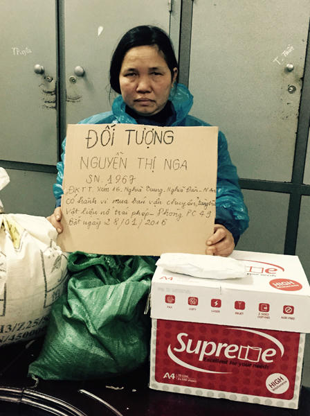 Đối tượng được xác định là Nguyễn Thị Nga (SN 1967, trú tại xã Nghĩa Lợi, Nghĩa Đàn). Khám xét nơi ở của đối tượng, phát hiện 17kg vật liệu nổ và 10 kíp điện.