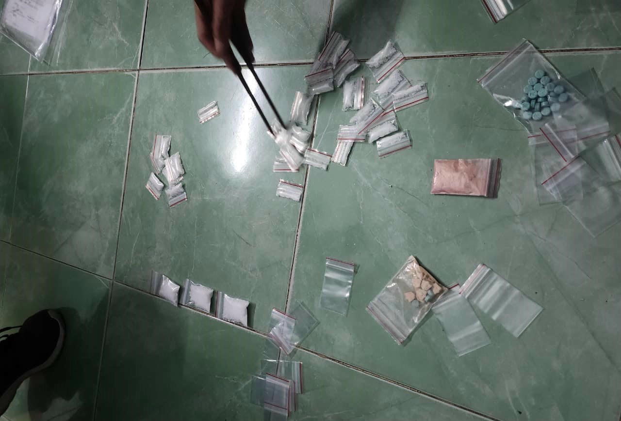 Khám xét nhà vợ chồng Hoàng và Hoa, Ban chuyên án thu giữ thêm 80 viên thuốc lắc cùng 100 gam ma tuý Ketamine.