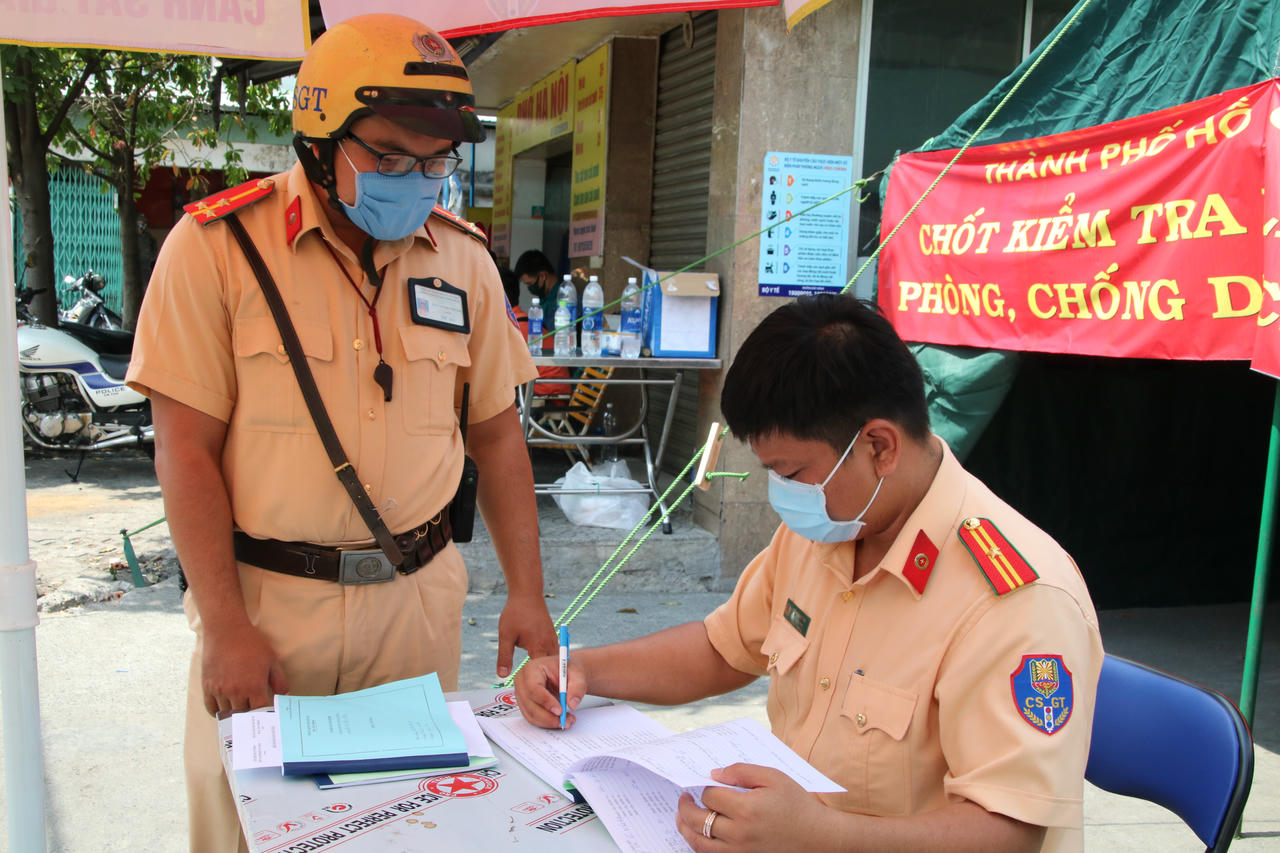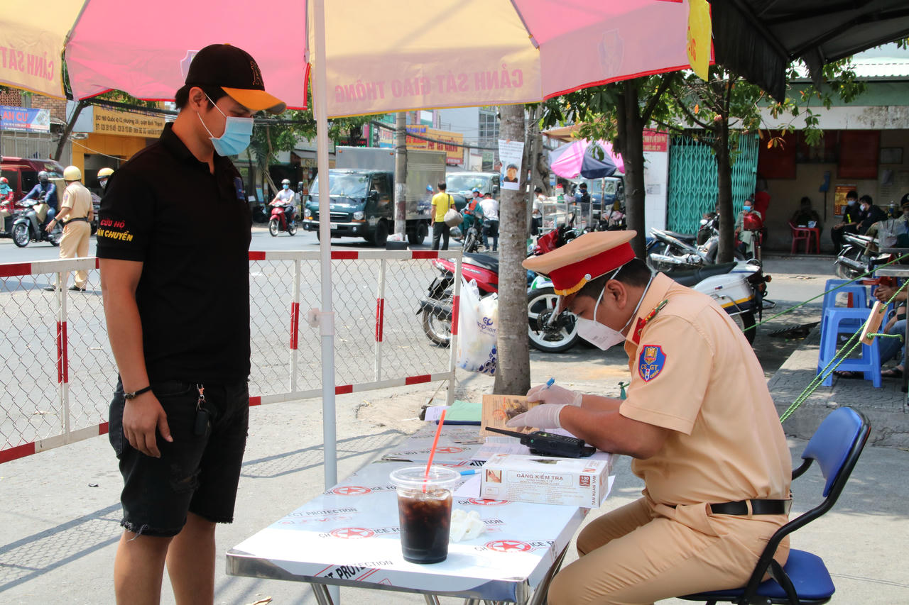 Thiếu tá Tâm cho biết: “Chốt được lập lúc 18h ngày 5/4 sau lệnh ra quân tổ chức chốt, trạm kiểm dịch trên toàn TP. Một chốt vào mỗi ca như vậy khoảng gần 20 người, bao gồm Công an TP, Thanh tra Sở Giao thông vận tải, Công an quận 3, Công an quận Bình Thạnh, Cảnh sát cơ động, cán bộ Ban quản lý An toàn thực phẩm và nhân viên y tế phụ trách kiểm tra thân nhiệt cho người tham gia giao thông. Một ca kéo dài 4 tiếng, luân phiên đảm bảo 24/24 đều có người tại chốt để tiến hành công tác kiểm tra, đảm bảo an ninh trật tự.”