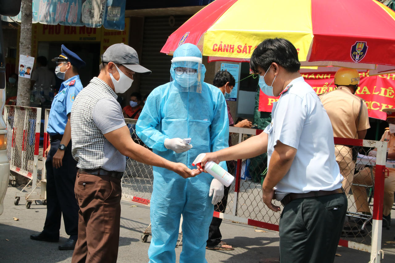 Tại chốt barie phía trong, một cán bộ thuộc Ban quản lí an toàn và thực phẩm TP Hồ Chí Minh cùng một bác sĩ thuộc Bệnh viện quận Bình Thạnh thay phiên xịt nước rửa tay và tiến hành đo thân nhiệt theo quy định, để bảo đảm rằng các yếu tố dịch tể sau quá trình sàn lọc ban đầu, đảm bảo an toàn: nhiệt độ cơ thể nằm trong khoảng từ 36,5 đến dưới 38 độ, không có biểu hiện ho, đau họng hay mệt mỏi đi kèm.