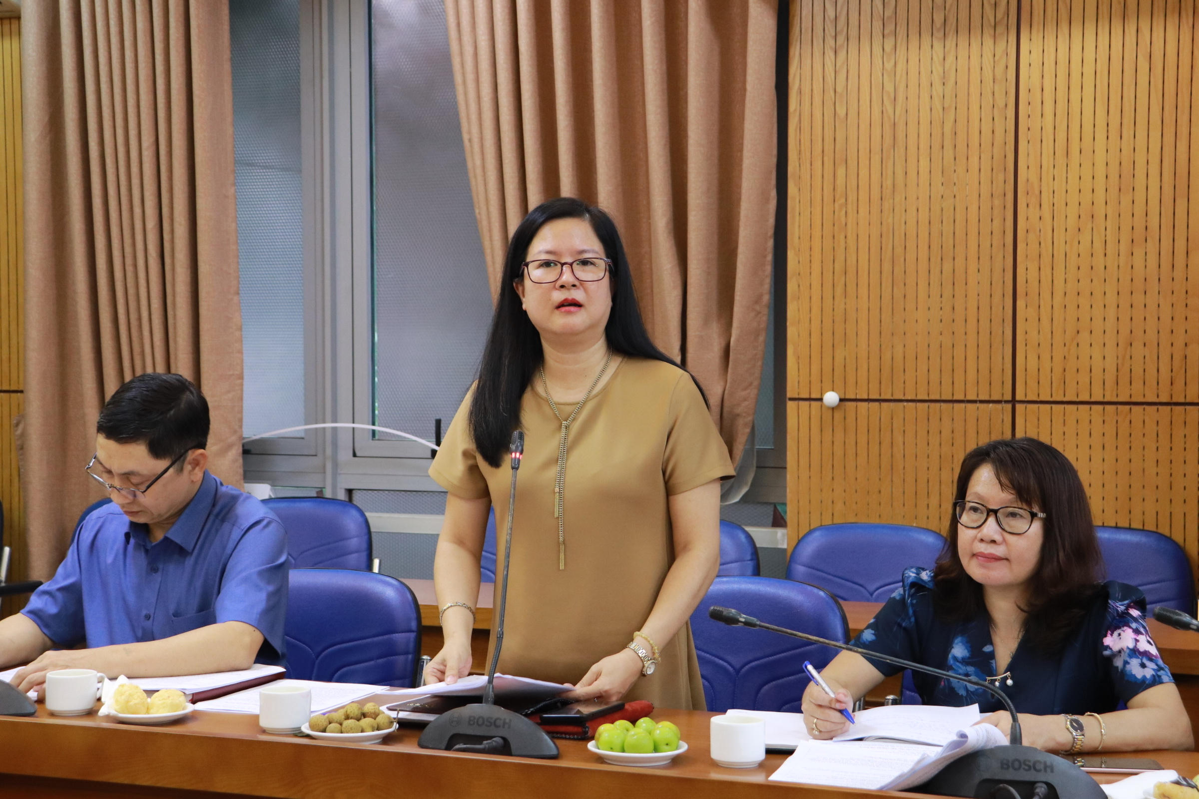 Bà Đỗ Thị Thanh Hương, Phó Vụ trưởng Vụ Các vấn đề chung về xây dựng pháp luật trình bày báo cáo |