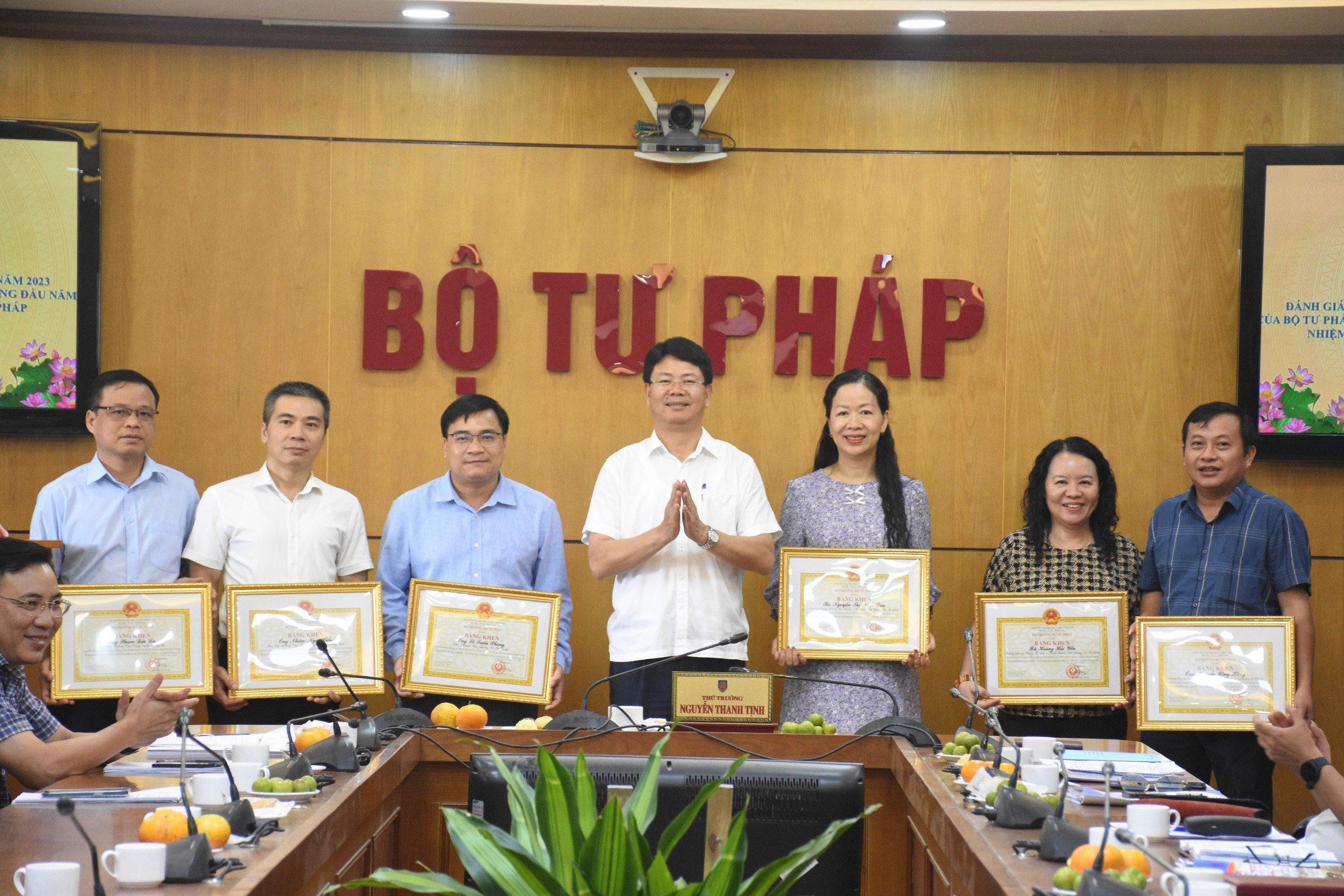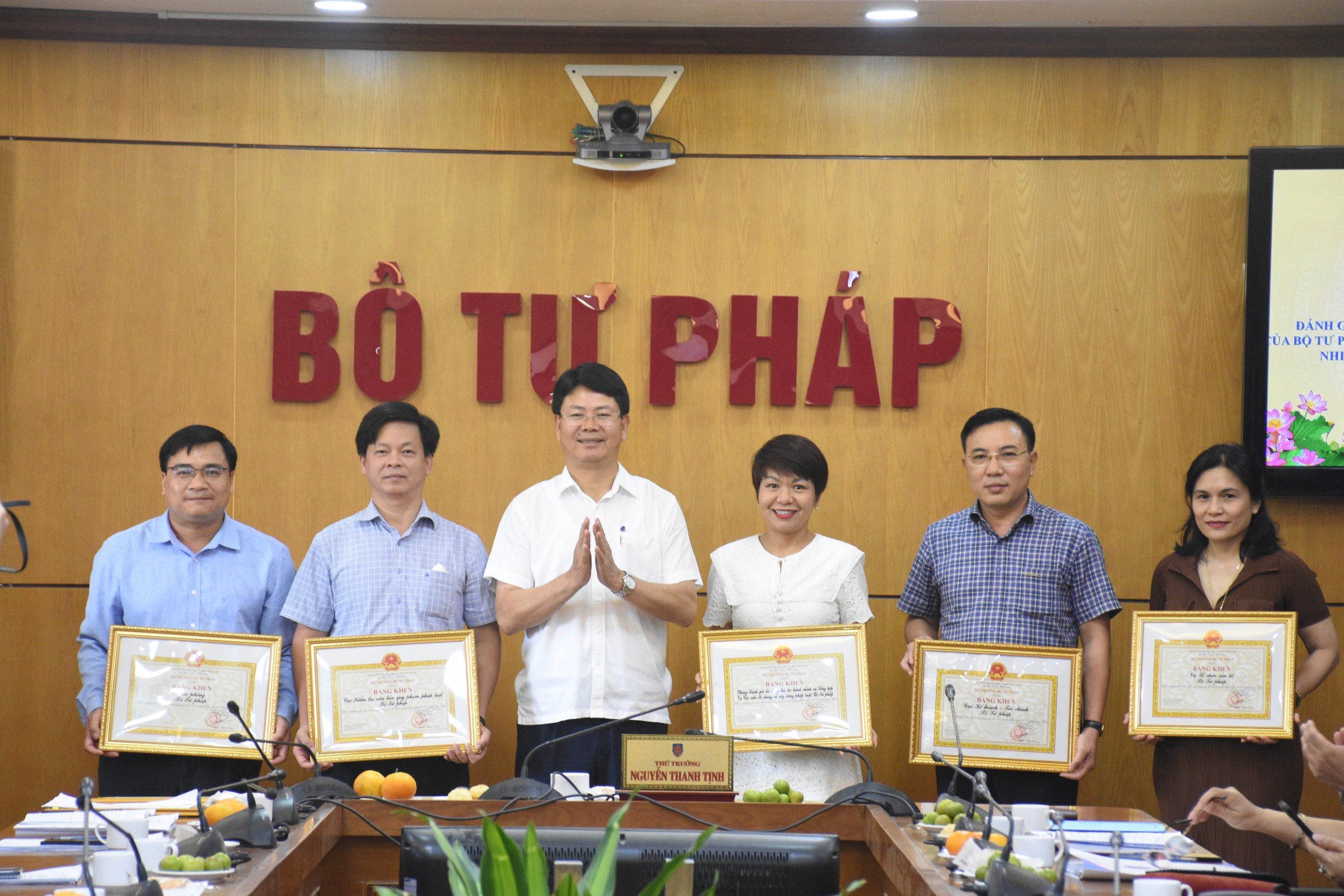 Nhân dịp này, thay mặt Ban cán sự Đảng, Lãnh đạo Bộ Tư pháp, Thứ trưởng Nguyễn Thanh Tịnh đã trao tặng bằng khen cho 05 tập thể và 20 cá nhân có thành tích xuất sắc trong đóng góp vào kết quả Cải cách hành chính và Đề án 06.