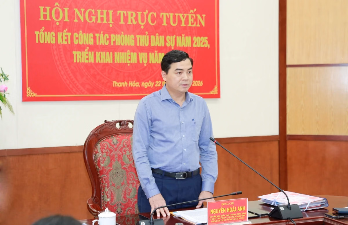Chiều 22/4, UBND tỉnh Thanh Hóa tổ chức hội nghị trực tuyến toàn tỉnh tổng kết công tác phòng thủ dân sự năm 2025, triển khai nhiệm vụ năm 2026.