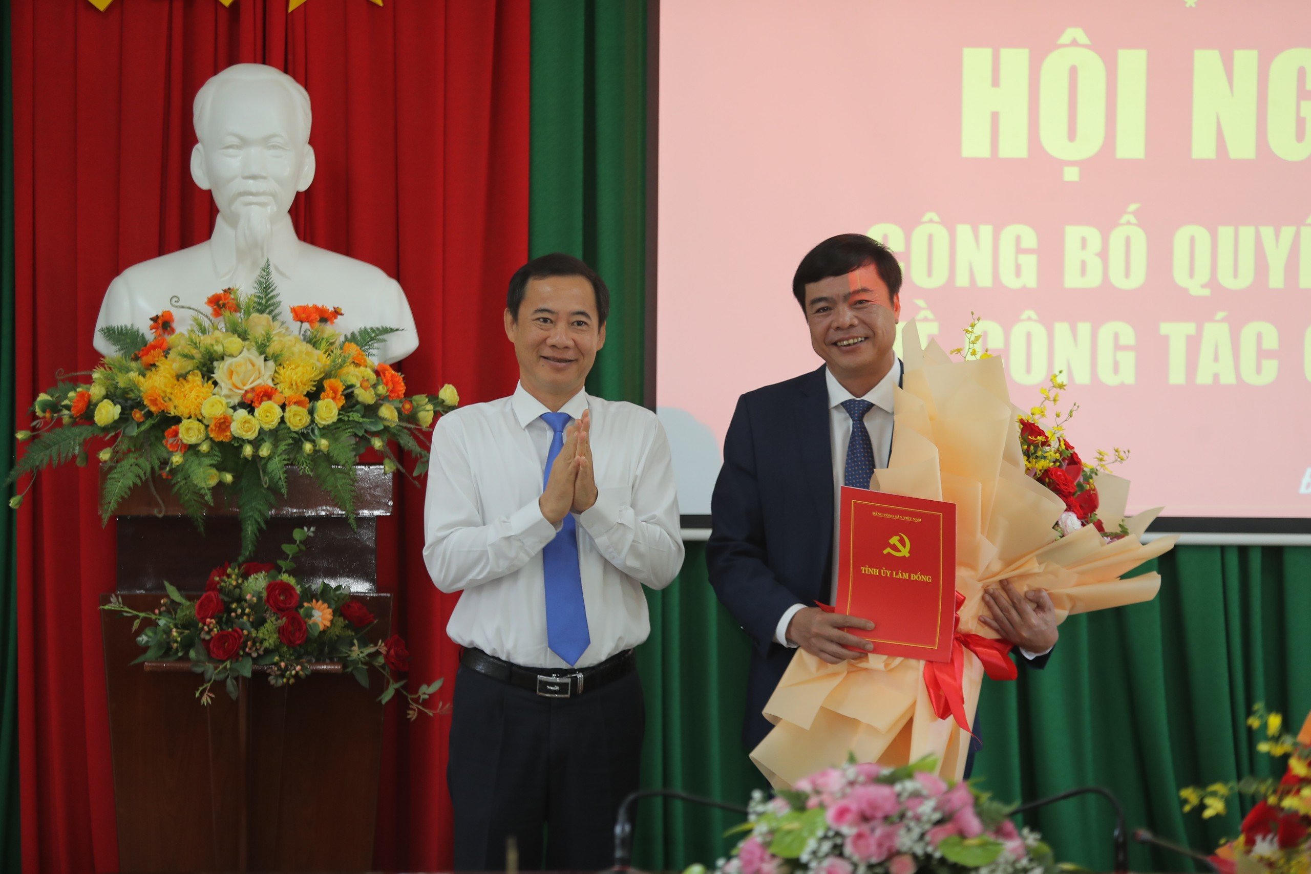Quyền Bí thư Tỉnh ủy Lâm Đồng chúc mừng tân Bí thư Đà Lạt Đặng Đức Hiệp. |