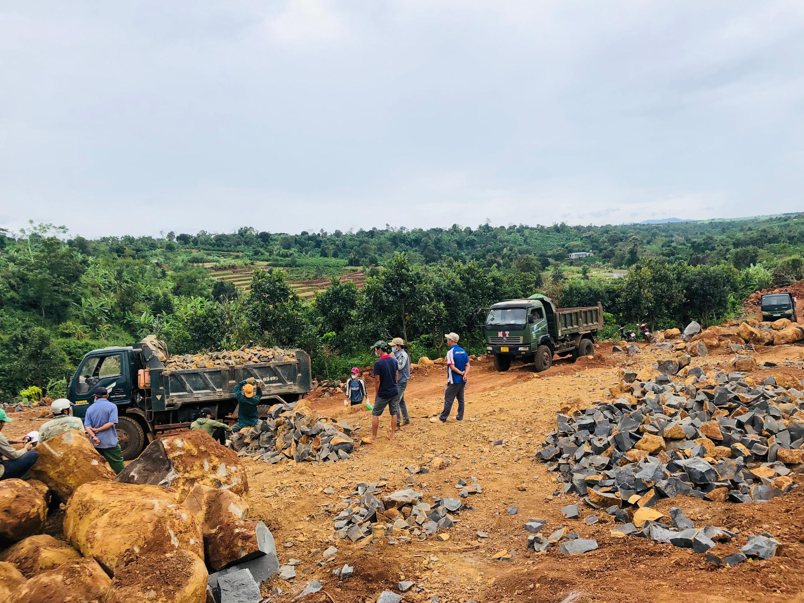Trong vai những người nông dân hái cà phê thuê, phóng viên chúng tôi đã tiếp cận điểm khai thác đá trái phép trên. Tại hiện trường, khoảng chục công nhân đang miệt mài chẻ đá thành từng viên với kích thước khoảng 25-30 cm.