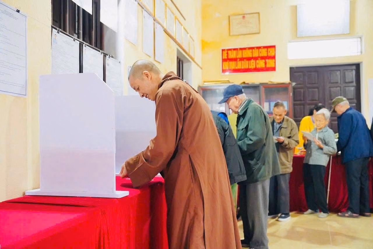 Cùng với gần 79 triệu cử tri cả nước, sáng 15/3, nhiều chư tăng, phật tử tại các chùa đã đến điểm bỏ phiếu từ sớm, thực hiện quyền và nghĩa vụ công dân.