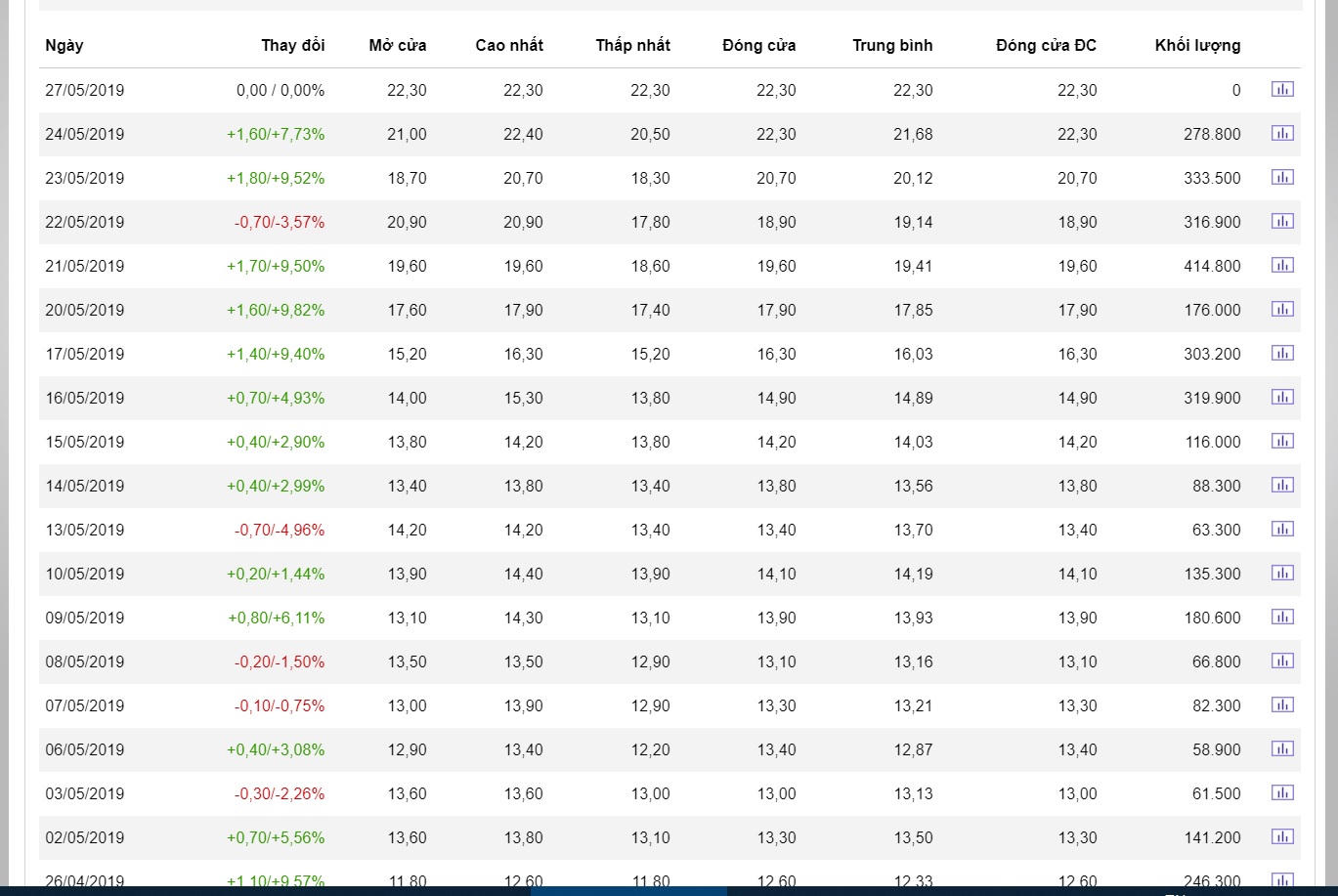 Cụ thể, trong tháng 1 và 2/2019, giá cổ phiếu VCR chỉ dao động từ 4.100 đồng đến 5.000 đồng/cổ phiếu thì sau phiên họp Đại hội đồng cổ đông Vinaconex ICT ngày 1/3/2019, trong khi giá chuyển đổi của Vinaconex là 10.000 đông/cổ phần thì giá cổ phiếu VCR liên tục tăng điểm. Ngày 19/3/2019, HĐQT Vinaconex ICT ra nghị quyết về phát hành trái phiếu, giá cổ phiếu VCR tăng lên 10.000 đồng/cổ phiếu. Trong các phiên giao dịch gần đây, giá cổ phiếu VCR đã đạt đỉnh 22.300 và chưa có dấu hiệu dừng lại.