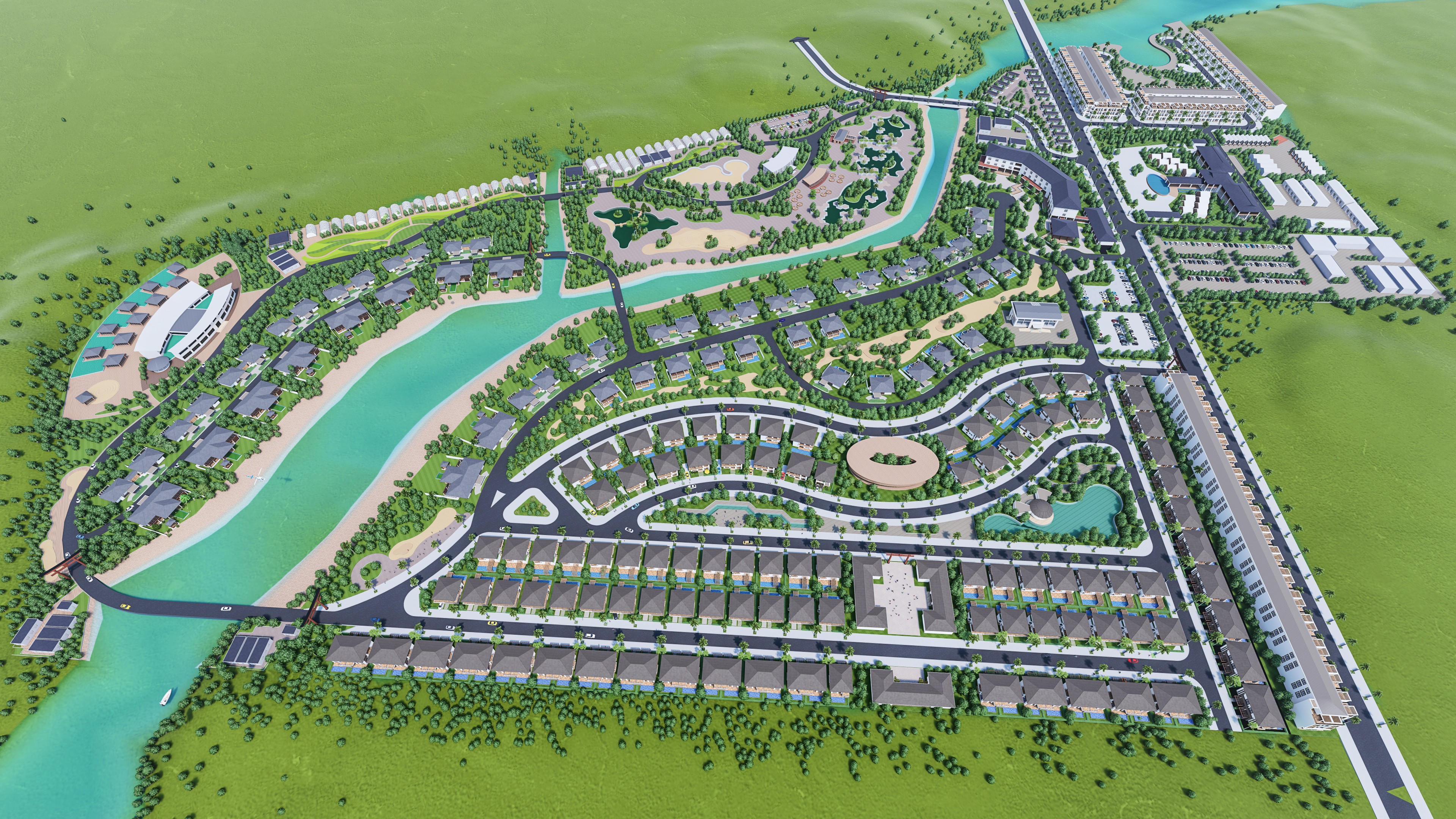 | Phối cảnh dự án Khu du lịch nghỉ dưỡng, chăm sóc sức khỏe và dân cư khu vực suối nước nóng Hội Vân. |
