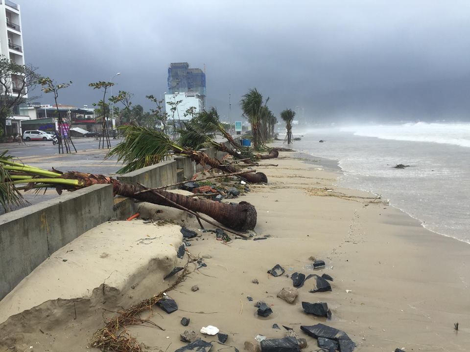 Vì thế, ngay trong chiều, dọc tuyến đường Phạm Văn Đồng, nhiều biển quảng cáo bị gió quật đã được người dân và lực lượng chức năng quận thu dọn. Nhiều trụ đèn, cây xay đổ gãy dọc các tuyến phố đã bắt đầu được dựng lạ. Dọc bãi biển, nhiều hàng quán, chòi nghỉ mát xiêu vẹo đã được người dân và lực lượng chức năng dựng lại hoặc thay thế.