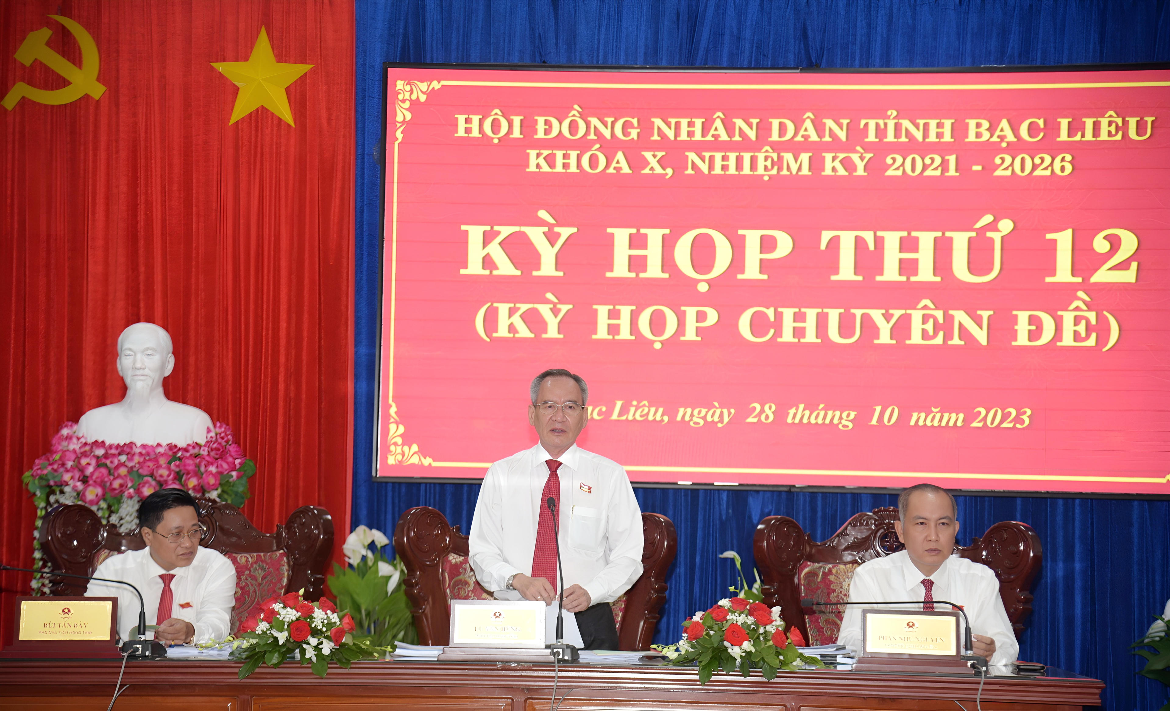 Phát biểu bế mạc Kỳ họp, để hoàn thành thắng lợi các chỉ tiêu đề ra trong năm 2023, ông Lữ Văn Hùng - Uỷ viên BCH TW Đảng, Bí thư Tỉnh Uỷ, Chủ tịch HĐND tỉnh Bạc Liêu, đề nghị UBND tỉnh và các cấp, các ngành, các địa phương, đơn vị rà soát, đánh giá đúng thực chất tình hình thực hiện các chỉ tiêu, nhiệm vụ phát triển kinh tế - xã hội, thu - chi ngân sách và kế hoạch đầu tư công năm 2023, để có các biện pháp chỉ đạo thực hiện quyết liệt, đồng bộ nhằm đạt kết quả cao nhất. Tiếp tục cải thiện mạnh mẽ môi trường đầu tư kinh doanh, đẩy nhanh các dự án chậm tiến độ, tháo gỡ khó khăn trong thực hiện và giải ngân vốn đầu tư công…; Tăng cường kỷ luật, kỷ cương, cải cách hành chính, đổi mới phương pháp chỉ đạo, điều hành, bám sát các kết luận, nghị quyết, quyết định của Trung ương, của tỉnh và tình hình thực tiễn của đơn vị, địa phương; khắc phục tình trạng đùn đẩy, né tránh, ngại khó, trông chờ, ỷ lại.