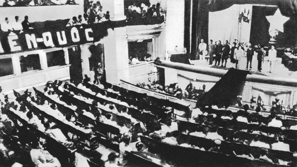 | Kỳ họp thứ nhất, Quốc hội khóa I - Quốc hội đầu tiên của nước Việt Nam Dân chủ Cộng hòa sau Tổng tuyển cử ngày 6/1/1946, tại Nhà hát lớn Hà Nội (Ảnh: hochiminh.vn) |