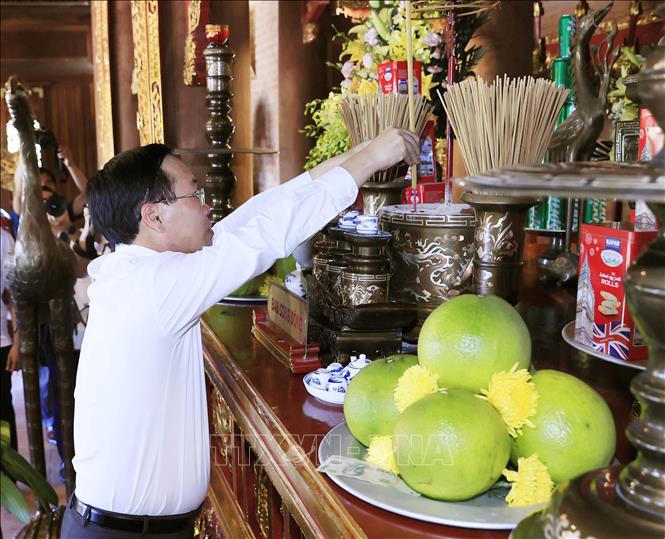 Chủ tịch nước Võ Văn Thưởng dâng hương tại Di tích quốc gia đặc biệt Địa điểm chiến thắng Xương Giang. Ảnh: Thống Nhất/TTXVN