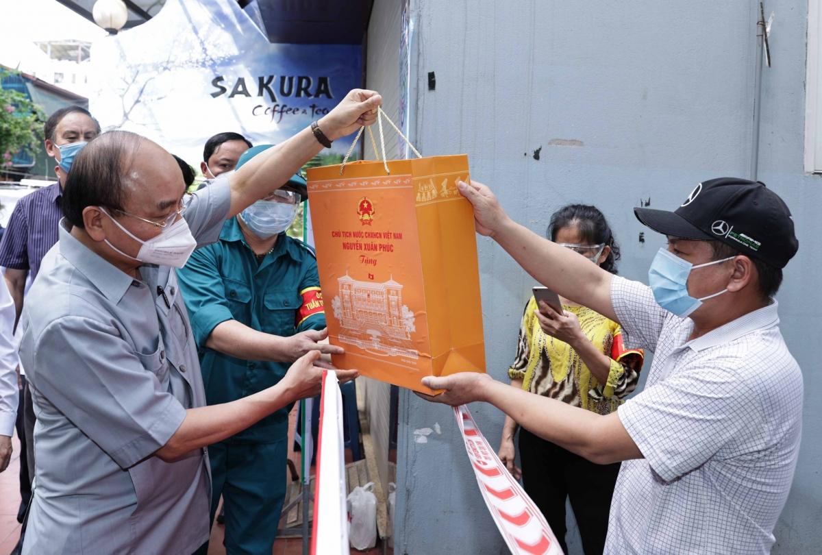 Chủ tịch nước Nguyễn Xuân Phúc tặng quà người dân ở nơi thực hiện giãn cách xã hội |