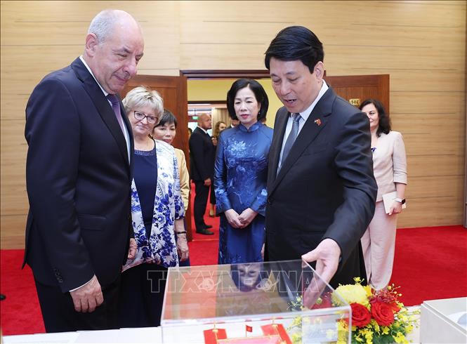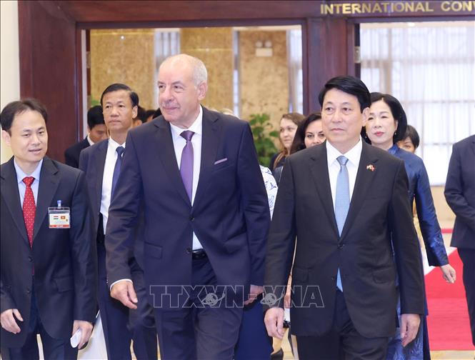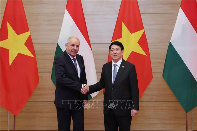 Trong không khí thắm tình hữu nghị, thay mặt Nhà nước và nhân dân Việt Nam, Chủ tịch nước Lương Cường nhiệt liệt chào mừng Tổng thống Hungary Sulyok Tamas và Phu nhân cùng Đoàn đại biểu cấp cao Hungary sang thăm chính thức Việt Nam.