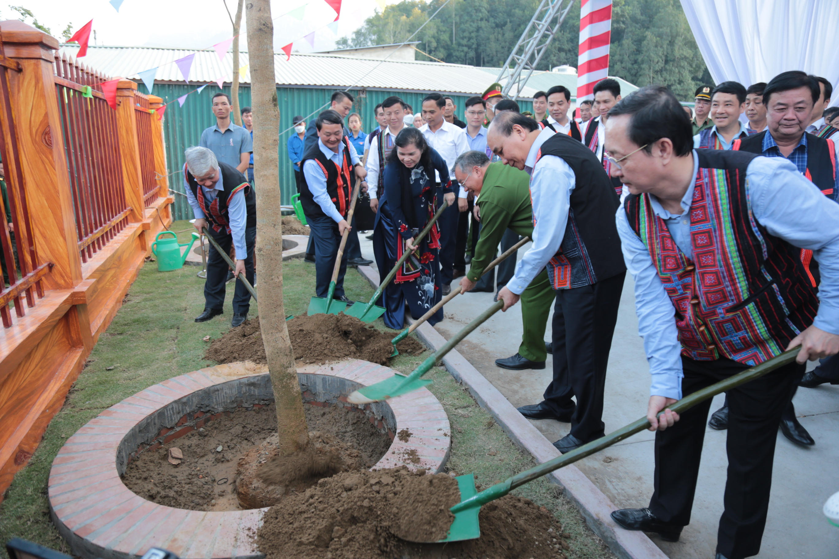 Ngay sau buổi lễ, Chủ tịch nước Nguyễn Xuân Phúc cùng các đại biểu đã trồng cây lưu niệm tại nhà văn hóa xã Khổng Lào |