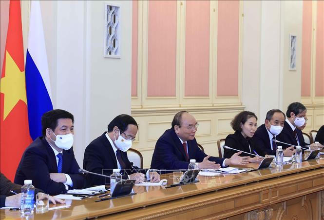 Chủ tịch nước bày tỏ cảm ơn và mong Chính phủ Liên bang Nga tiếp tục quan tâm và tạo điều kiện thuận lợi cho cộng đồng người Việt làm ăn, sinh sống ở Nga và là cầu nối giúp cho quan hệ hữu nghị hai nước. Chủ tịch nước cũng bày tỏ tin tưởng rằng với quyết tâm của lãnh đạo hai nước, nỗ lực của Chính phủ và các bộ, ngành và địa phương, quan hệ Đối tác chiến lược toàn diện Việt Nam - Nga sẽ ngày càng đi vào chiều sâu và hiệu quả theo đúng những định hướng mà Nguyên thủ hai nước đã đề ra trong Tầm nhìn quan hệ Đối tác chiến lược toàn diện Việt Nam - Nga đến năm 2030.