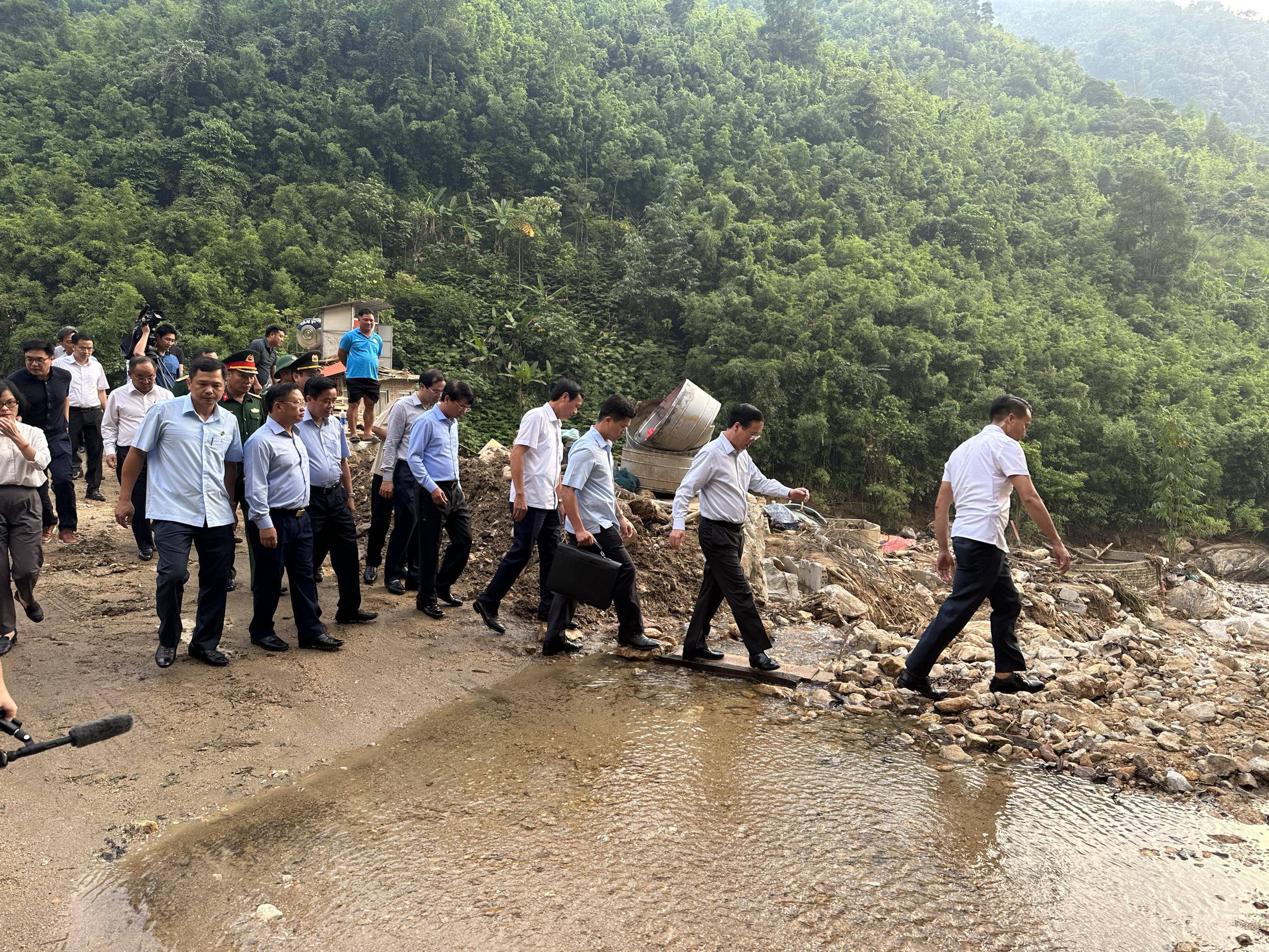 Chủ tịch nước Võ Văn Thưởng cùng đoàn công tác kiểm tra công tác khắc phục hậu quả mưa lũ tại Sa Pa. |