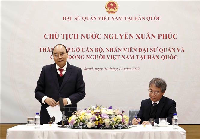Chủ tịch nước đề nghị trong thời gian tới, Đại sứ quán Việt Nam tại Hàn Quốc cần tiếp tục phát huy vai trò cầu nối giữa hai nước, phối hợp triển khai hiệu quả các thỏa thuận của lãnh đạo cấp cao hai nước trên tất cả các lĩnh vực; phối hợp chặt chẽ với các bộ, ngành, địa phương trong nước trong triển khai thực hiện các hoạt động hợp tác, thúc đẩy chuyển giao công nghệ, tranh thủ tối đa các nguồn lực từ Hàn Quốc phục vụ sự nghiệp công nghiệp hóa và hiện đại hóa đất nước, qua đó góp phần thúc đẩy quan hệ hợp tác Việt Nam – Hàn Quốc ngày càng phát triển mạnh mẽ và hiệu quả; theo dõi sát diễn biến tình hình sở tại và khu vực, làm tốt công tác dự báo. Làm tốt hơn nữa công tác bảo hộ công dân, hỗ trợ cộng đồng người Việt Nam đang sinh sống, học tập và làm việc tại Hàn Quốc, đặc biệt trong bối cảnh cộng đồng người Việt tại Hàn Quốc ngày càng lớn mạnh, số lượng gia đình đa văn hóa Việt – Hàn tiếp tục gia tăng; đồng thời cần tiếp tục tăng cường công tác tuyên truyền, vận động cộng đồng ta tại Hàn Quốc tuân thủ pháp luật của nước sở tại, cùng hỗ trợ nhau làm ăn, học tập thành công.